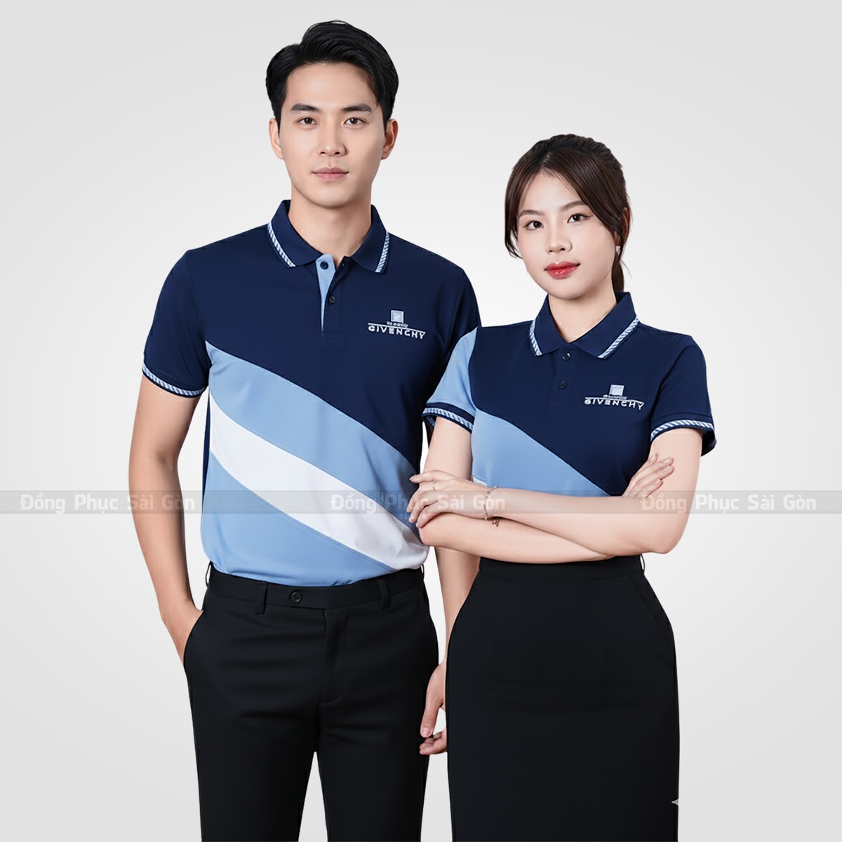Áo Đồng Phục Doanh Nghiệp- Xanh đen phối xanh biển – trắng