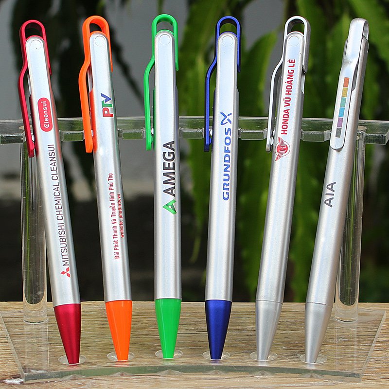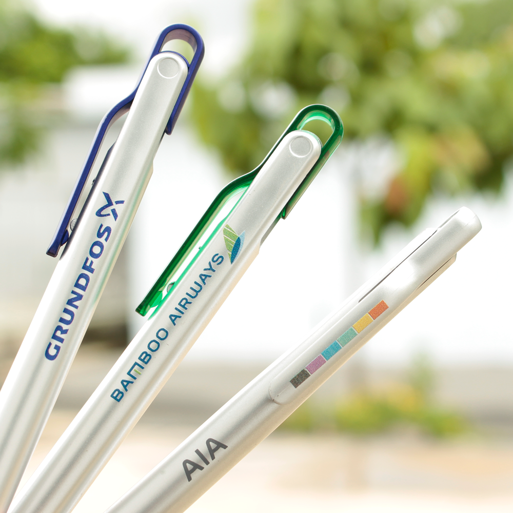 - In ấn: in hình ảnh, logo nhiều màu sắc ở mặt thân bút và cài bút theo yêu cầu…